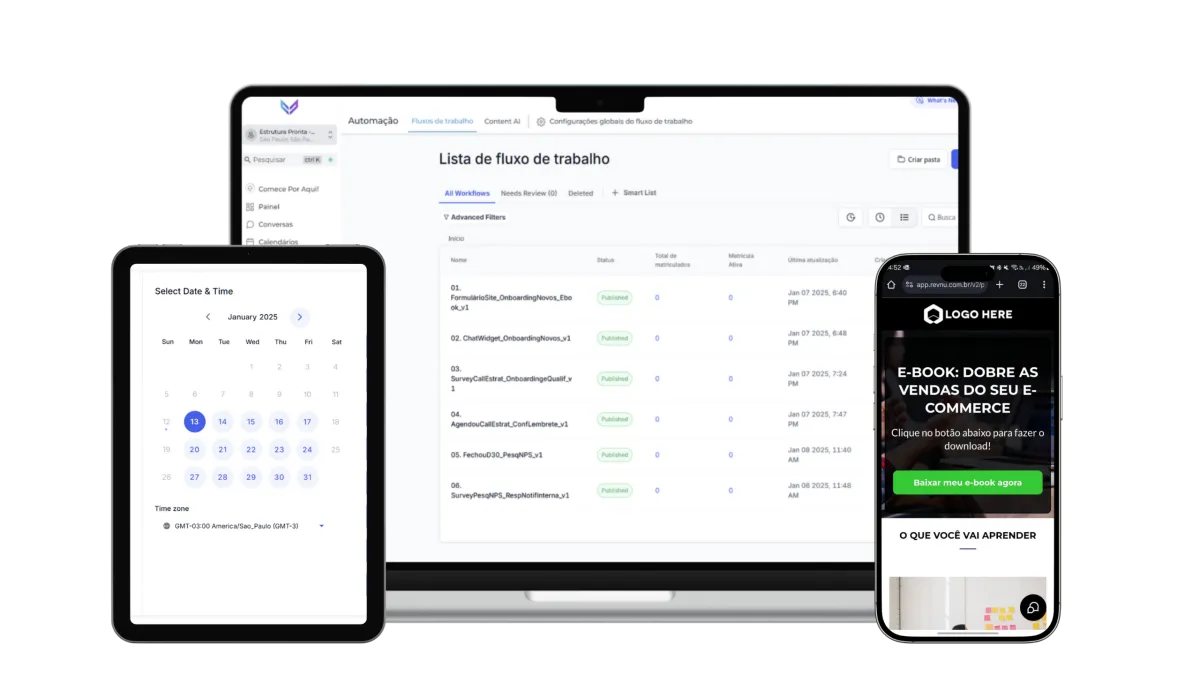 Automatize mensagens no WhatsApp, e-mails, lembretes e fluxos de trabalho para economizar tempo e nunca perder oportunidades;